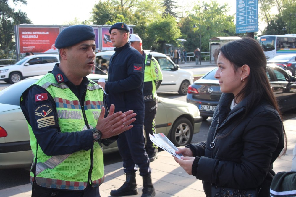 İçişleri Bakanlığı’nca “Karayolu Trafik Güvenliği Eylem Planı” doğrultusunda 81 ilde olduğu gibi Karadeniz Ereğli’de de uygulama gerçekleştirildi. Karayolu Trafik Haftası etkinlikleri kapsamında yapılan uygulamanın mottosunun “Yayalar için 5 adımda güvenlik” olduğu açıklandı.