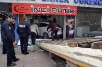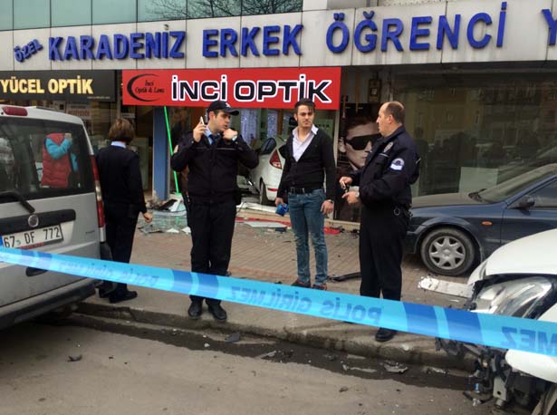 iki otomobile de çarparak optik dükkanına girdi.