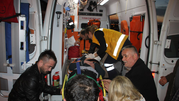 Yaralı, ambulans ile Karadeniz Ereğli Devlet Hastanesi'ne kaldırılırken,