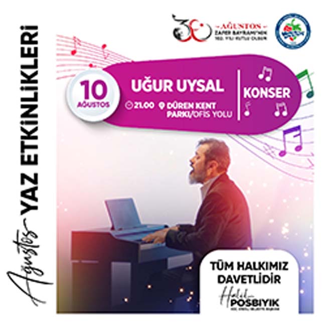 Kdz. Ereğli Belediyesi yaz etkinlikleri dolu dizgin devam ediyor. Cumartesi akşamı bölgenin sevilen sanatçılarından Uğur Uysal halka açık konser verecek.