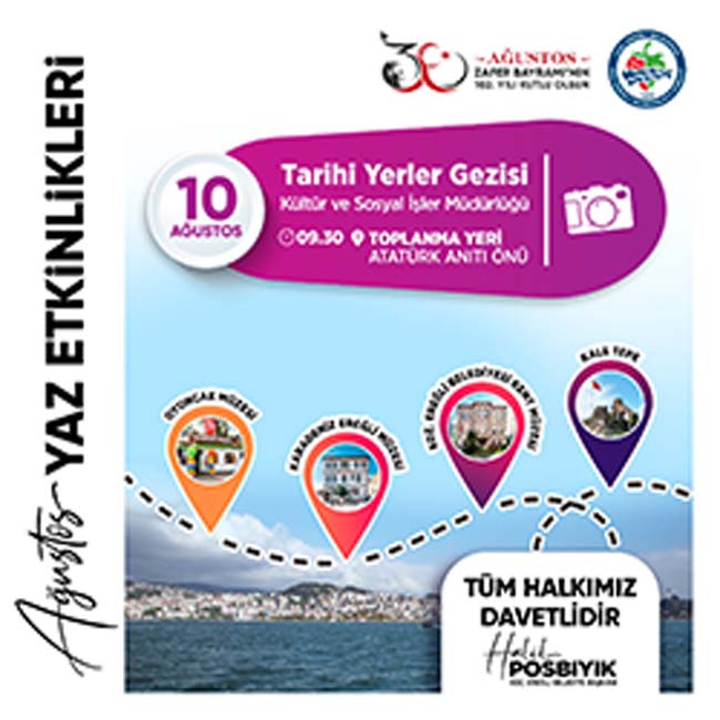 Kdz. Ereğli Belediyesi tarafından düzenlenen Yaz Etkinlikleri, Ağustos ayında da dolu dizgin devam ediyor. Cumartesi akşamı bölgenin sevilen sanatçısı Uğur Uysal, sahildeki Düren Park Süs Havuzu’nda konser verecek. Cumartesi sabah ayrıca Tarihi Yerler Gezisi düzenlenecek. Belediye Başkanı Halil Posbıyık, etkinliklere Ereğli halkını davet etti.