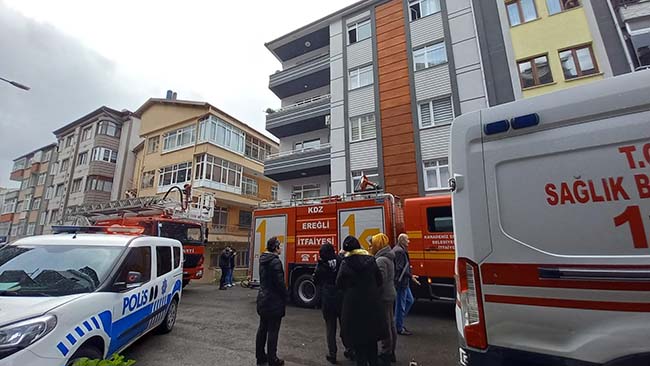 Zonguldak'ın Ereğli ilçesinde bir apartmanın 5. katında çıkan yangın itfaiye ekiplerinin müdahalesiyle söndürüldü.