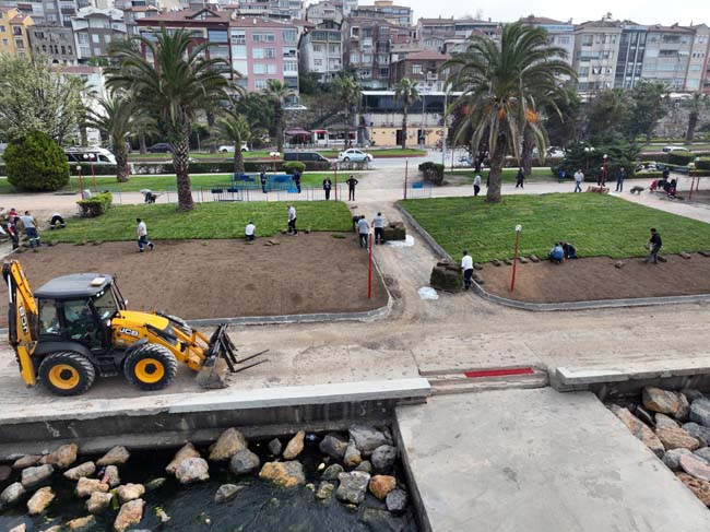 Kdz. Ereğli Belediyesi, 19 Kasım felaketinde zarar gören Kdz. Ereğli sahilini yeniden yeşillendiriyor. Çim ekme çalışmaları her noktada devam ediyor.