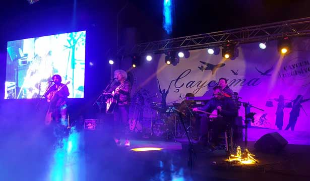 Yeni Türkü "Maskeli Balo" ile başlayıp "Telli Telli" ile bitirdiği konserinde, her biri hit olmuş sevilen parçalarını seslendirirken, grubun solisti Derya Köroğlu şarkı aralarında verdiği mesajlarla da alkış aldı. Köroğlu, kadınlar için şiddetin ve ayrımcılığın olmadığı bir dünya isterken, "Yeşilmişik" şarkısından önce, Cerattepe'de ormanları için direnen Artvin halkına selam gönderdi. İlçeye tarihi bir gün yaşatan konserin sonunda Çaycuma Belediye Başkan Vekili Cengiz Gökçe gruba çiçek sundu. Grup üyeleri, ilgileri ve şarkılara katılımlarıyla sahne performanslarını artıracak bir enerji yükleyen Çaycuma halkına teşekkür etti.