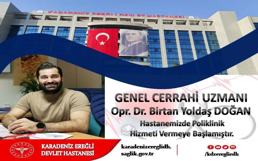 Karadeniz Ereğli Devlet Hastanesi sosyal medya hesabından yapılan açıklamaya göre; Genel Cerrahi Uzmanı Opr. Dr. Birtan Yoldaş Doğan’ın hastanede poliklinik hizmeti vermeye başladı.