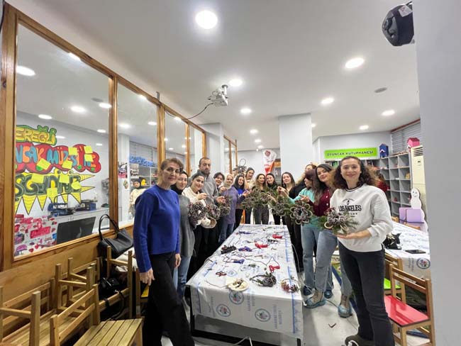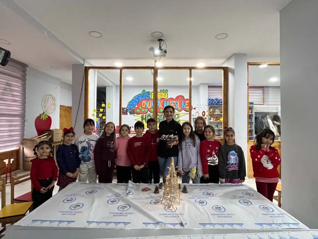 “Anne- Çocuk kozalağın dönüşümü (geri dönüşüm ve yaratıcılık) , Psikolojik iyi oluş (Oyuncağını Kap Gel) , Yeni yıl temalı masal ve sanat, Çocuklar için Felsefe, Yılbaşı Balmumu Krem yapımı, Zencefilli Yılbaşı Kurabiyesi Süsleme, Kozalak Kurabiye Yapımı, Yeni yıl temalı 3D yazıcı ile baskı ve boyama ve son olarak Kozalağın dönüşümü Yılbaşı Duvar ve Kapı süsü yapım atölyeleri gerçekleştirildi.