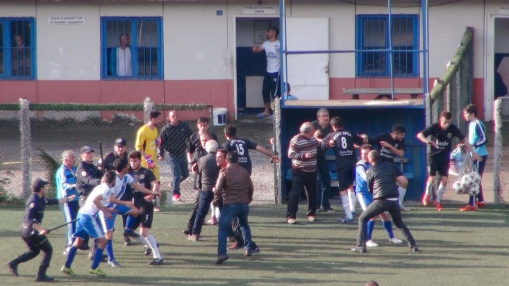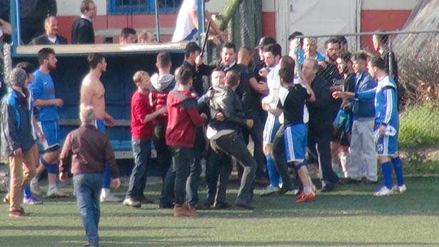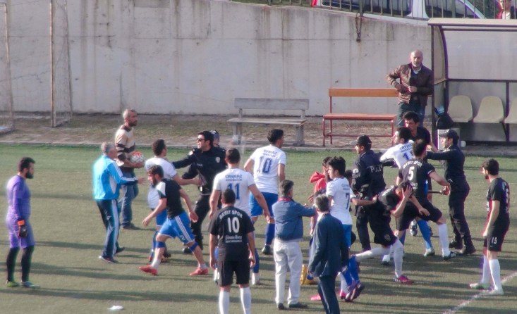 kurtulamadı. Polisin müdahalesi de öfkeli futbolcuları durdurmaya yetmedi.