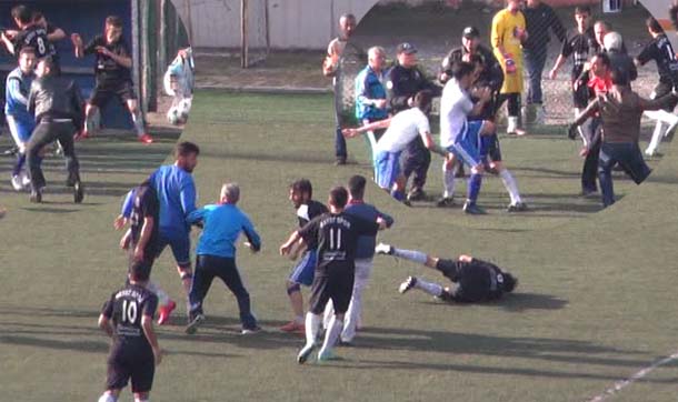 oyunculara saldıran Geliksporlu futbolcular, birçok oyuncuyu tartaklayıp,