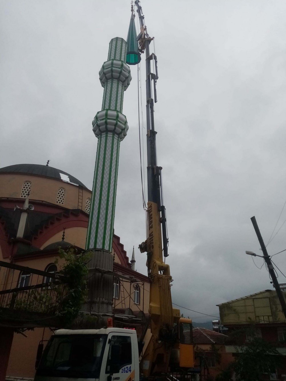 Zonguldak’ın Alaplı ilçesinde Çamcılar Köyünde geçtiğimiz aylarda etkili olan fırtına nedeniyle minaresi yıkılan caminin minaresi yenilendi. Çelik konstrüksiyon 30 metre uzunluğunda yapılarak montesi yapılan minare estetik olarak da büyük beğeni topladı. Yaklaşık 270 bin TL harcanarak yapılan minareden ezan okunacağı gün bekleniyor. Hayırseverlerin desteği ile caminin minaresi yenilendiğini belirten Çamcılar Köy Muhtarı Kemal Günay "Geçtiğimiz Mart ayında şiddetli fırtına sonra yıkılan minaremizin yerine yenisini yaptırdık. Hayırseverlerin desteği ile yapılan minaremiz 30 metre uzunluğunda. Rabbim destek olanlardan razı olsun" dedi.