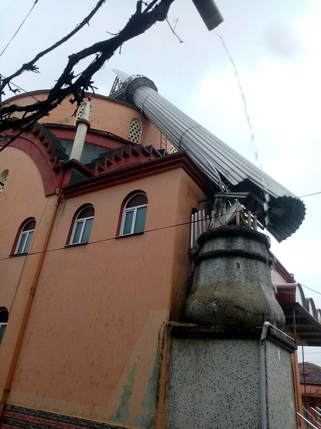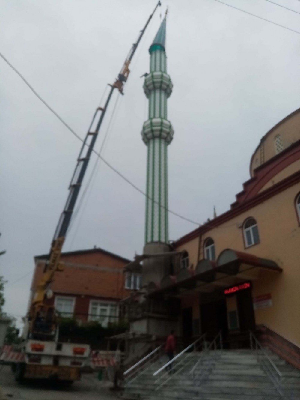 Zonguldak’ın Alaplı ilçesinde Mart ayında çıkan fırtınadan dolayı yıkılan cami minaresi hayırseverlerin desteği ile yenilendi.