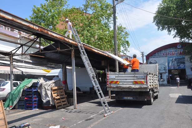Karadeniz Ereğli'de merkez Pazaryerinin yerinde rehabilitasyonu kapsamında çatı ve zemin değişiminin startı da bugün verildi. Öncelikle sebze-meyve satış ve köylü pazarının çatı sökümleri ile başlayan çalışmalar kapsamında çatıların yenileneceği ve pazaryeri zemininin değişeceğini söyleyen Kdz.Ereğli Belediye Başkanı Hüseyin Uysal: "Pazaryerimizi yenileyerek pazaryeri kültürünü yaşatma çabasındayız" dedi.