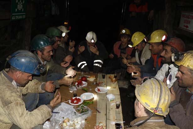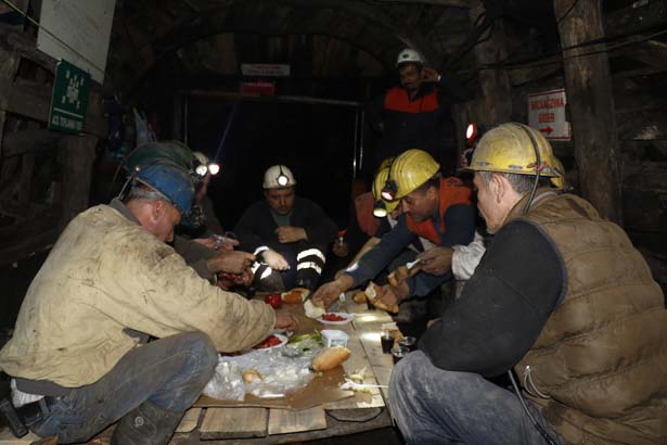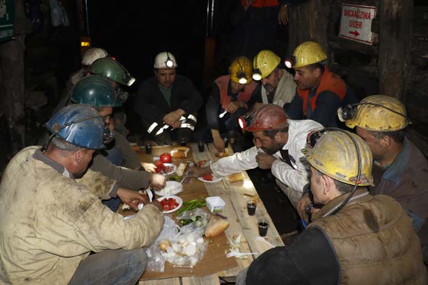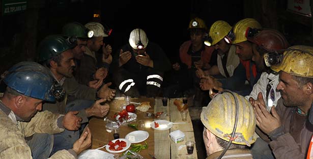 Zonguldak'ta özel bir maden ocağında çalışan işçiler yılın ilk sahurunu yerin metrelerce altında yaptı.