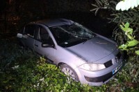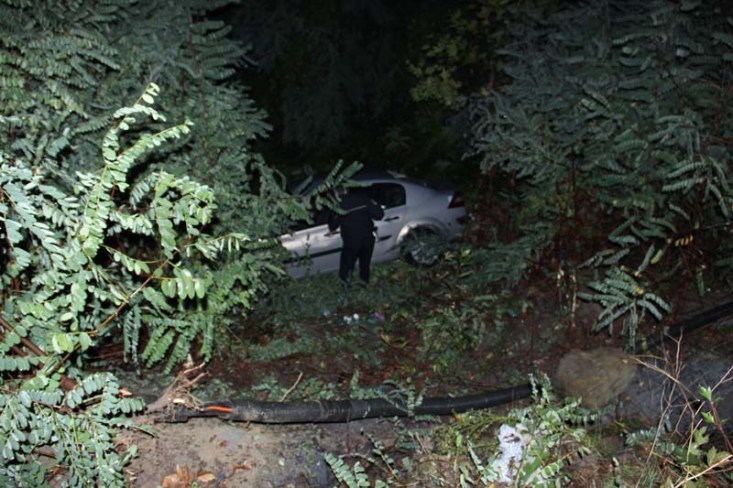 Zonguldak'ın Ereğli ilçesinde virajı alamayan otomobil takla atarak dere yatağına uçtu. Olay yerine gelen trafik ekipleri, araç içi ve çevresinde yaptığı incelemenin ardından yola çıkarken kayarak düştü. Polis memurunun yardımına basın mensupları koştu.