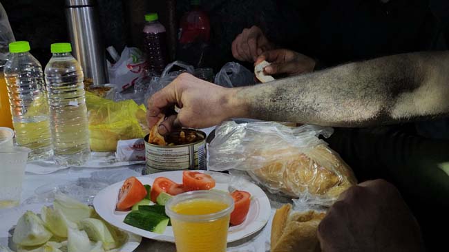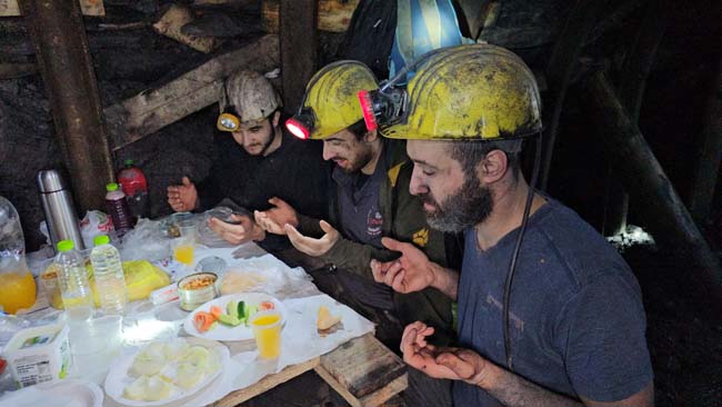 Domates, salatalık, konserve, soğan, peynir, zeytin, ekmek gibi yiyecekler ve içeceklerden oluşan masayı kurarak birbirleriyle sohbet edip bir taraftan da sahur yapan işçiler, imsak vakti geldiğinde de ezan okuyup dua etti. Kömür karasına bulanmış elleriyle ekmeklerini bölüşen madenciler, her ne kadar ailelerinden uzakta ilk sahuru karşılasalar da "Biz burada da bir aileyiz" diyerek buruk bir Ramazan mutluluğu yaşadılar.