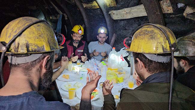Zonguldak'ta maden işçileri yerin metrelerce altında Ramazan ayını karşılayarak, ilk sahurlarını yaptılar.