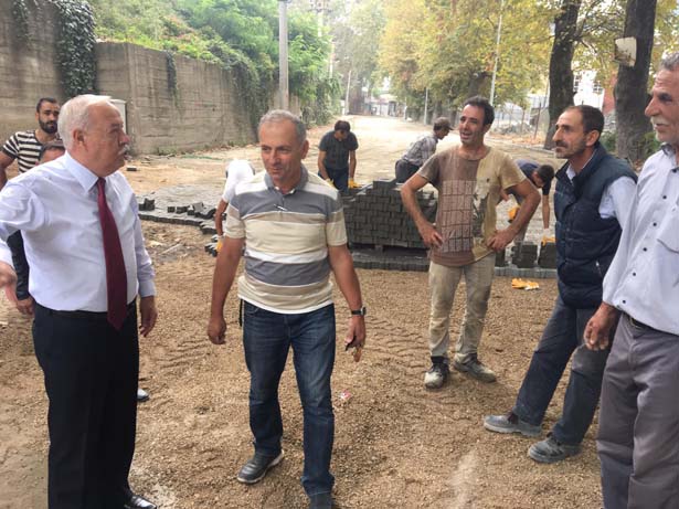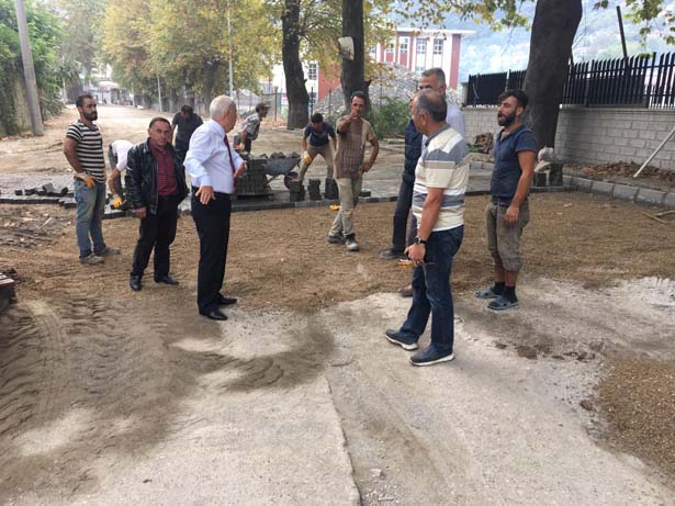 Zonguldak Belediye Başkanı Muharrem Akdemir, Asma yolu 69 Ambarları Mevkinde devam eden parke yol çalışmalarını yerinde inceledi.