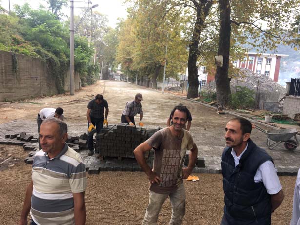 Fen İşleri Müdürlüğü ekipleri tarafından devam eden parke yol çalışmalarını