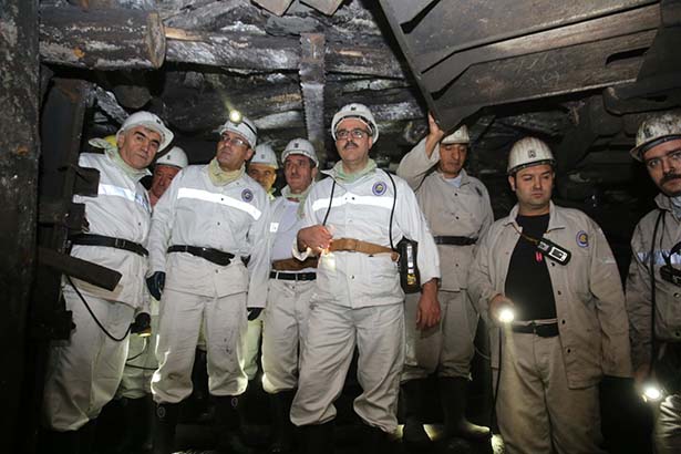 ve beraberindeki heyet, TTK Üzülmez T.İ.M.'de mekanize kazı uygulamalarını