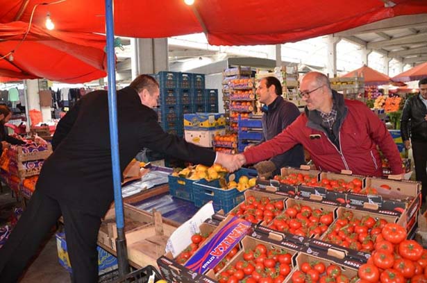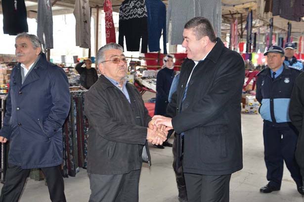 dinledi. Pazarcı esnafları ve vatandaşlarla selamlaşan, bazı vatandaş ve
