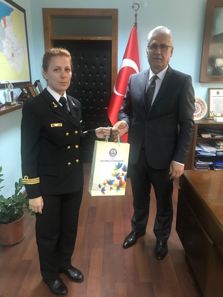 Zonguldak'ın Ereğli İlçe Kaymakamı Nazım Madenoğlu'nu, Karadeniz Ereğli'ye gelen yerli ve yabancı askeri gemi komutanları ile idari personelinin ziyaret ettiği bildirildi.
