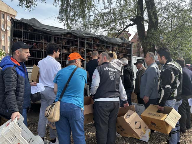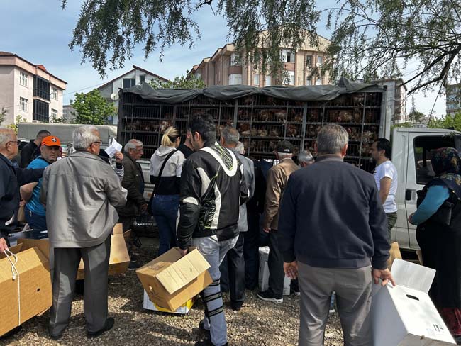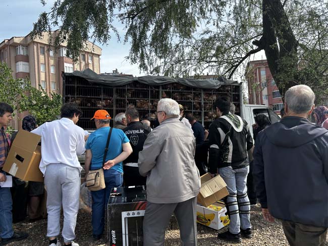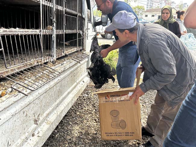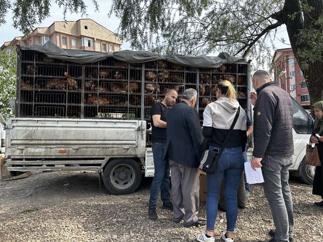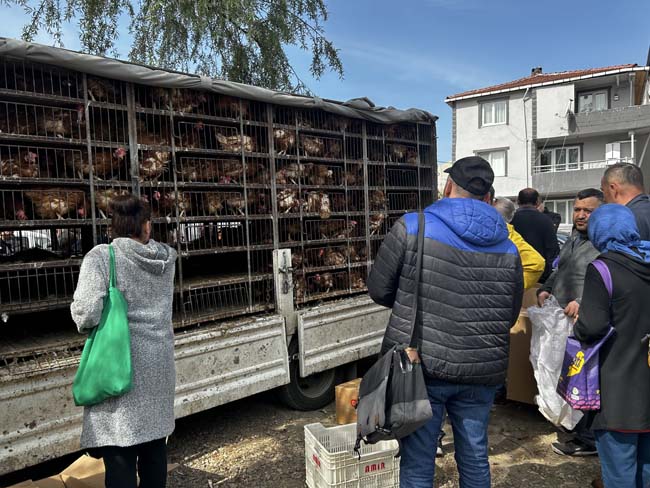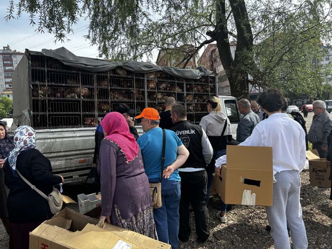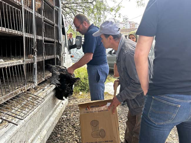 Ziraat Odası tarafından bir kamyonetle dağıtım alanına getirilen 1500 adet yumurta tavuğunun çiftçilere dağıtımı, oda yetkililerinin nezaretinde gerçekleştirildi.