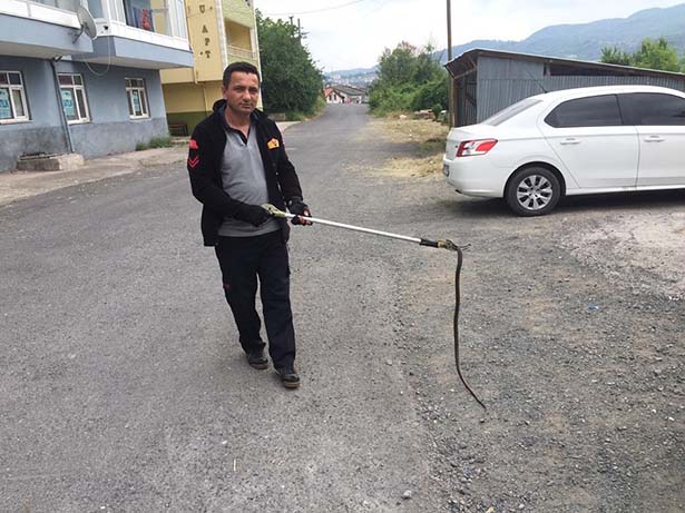 Gelen ihbar üzerine ise Kdz. Ereğli Sarıkorkmaz Mahallesi Yeşiltepe Caddesi'nde bir apartmanın elektrik odasına giren yılan apartman sakinlerine korku dolu anlar yaşattı. Yılanlar itfaiye ekiplerinin kullandığı özel aletle yakalanarak doğaya salındı.