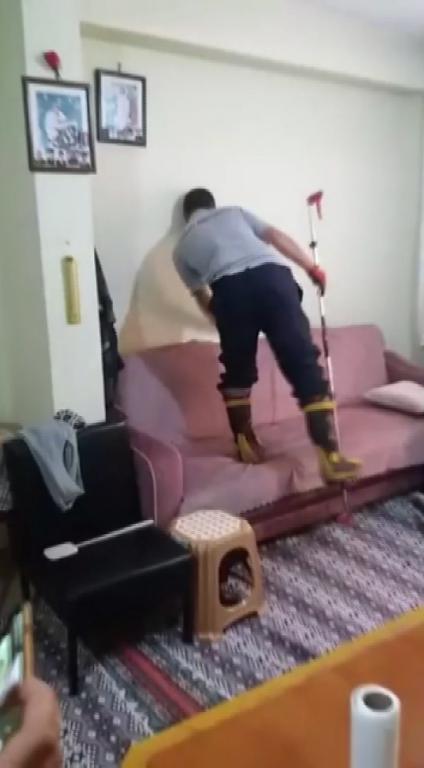 Belediyesi İtfaiye müdürlüğü ekiplerine haber verdi. Eve gelen itfaiye erleri,