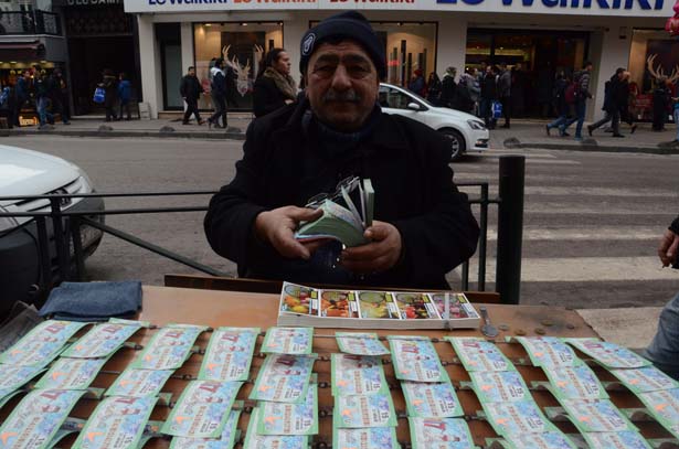 Vatandaşların ilgisinden memnun olduğunu ifade eden Biletçi Nuri Kocaoğlu, "Her sene olduğu gibi bu senede yılbaşı biletlerine vatandaşlardan büyük ilgi var. Geçen yıl büyük ikramiyenin bir parçasını Ankara biletine verdim. Her yıl bir ikramiye çıkıyor. Çeyrek Bilet 15 yarım 30 TL, tam bilet ise 60 TL'den satılıyor. En çok talep çeyrek bilete var ama durumu iyi olan yarım ve tam bilet alıyor. Yeni yıla kısa bir süre kaldı. Biletlerin tamamını tüketmeyi hedefliyorum" dedi.