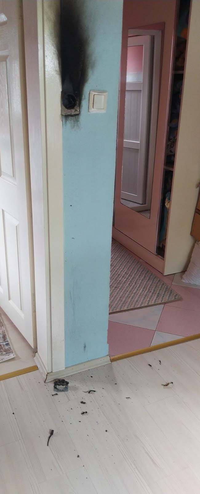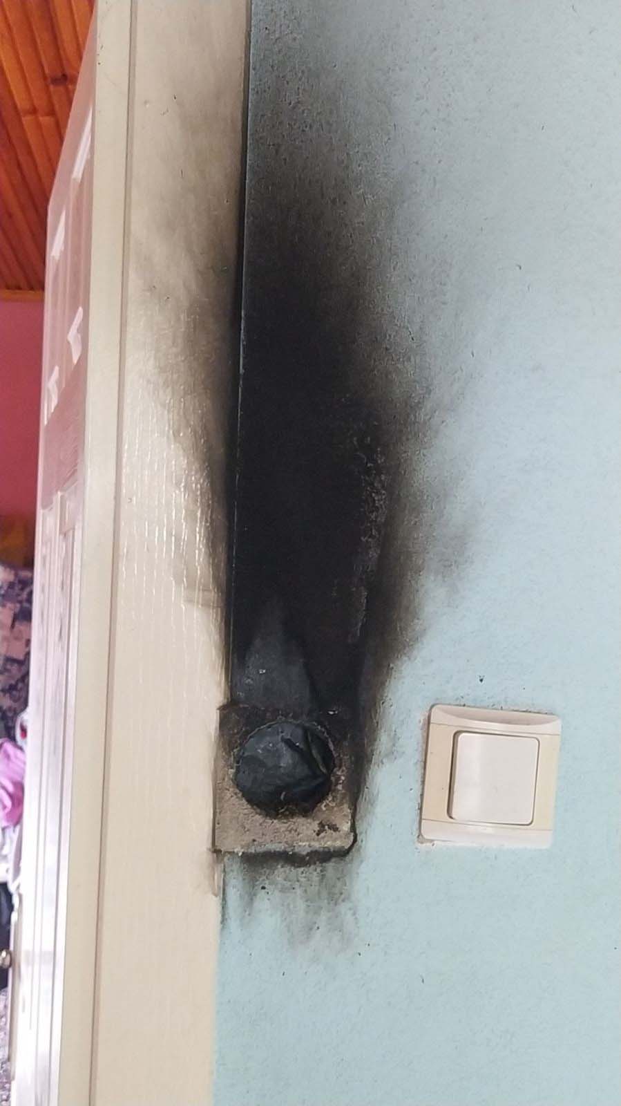 Zonguldak'ın Alaplı ilçesinin Gümeli Beldesinin Kale Mahallesi'nde, duvarına yıldırım düşen evdeki tüm elektrik tesisatı ile evin prizleri yandı.