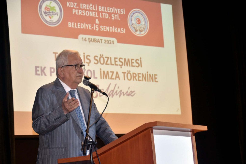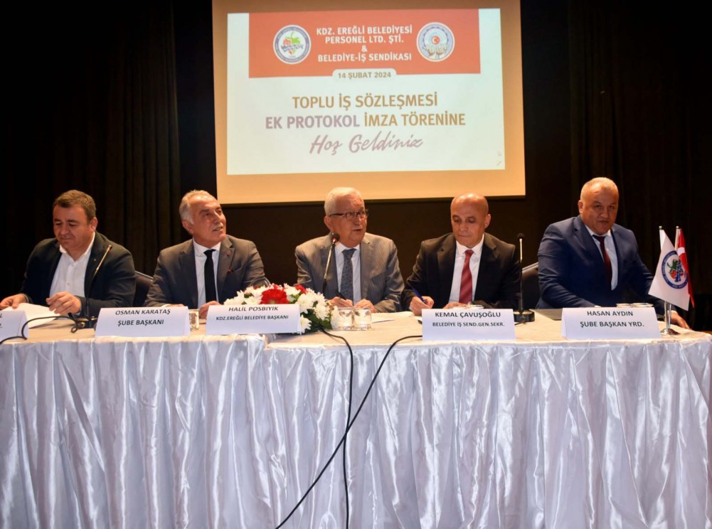 Kdz. Ereğli Belediyesi ile Belediye-İş Sendikası arasında artan enflasyon oranları karşısında ek toplu sözleşme imzalandı. Belediye Başkanı Halil Posbıyık, çalışanları enflasyona ezdirmeyerek yüzde 93 oranında zam yaptı.