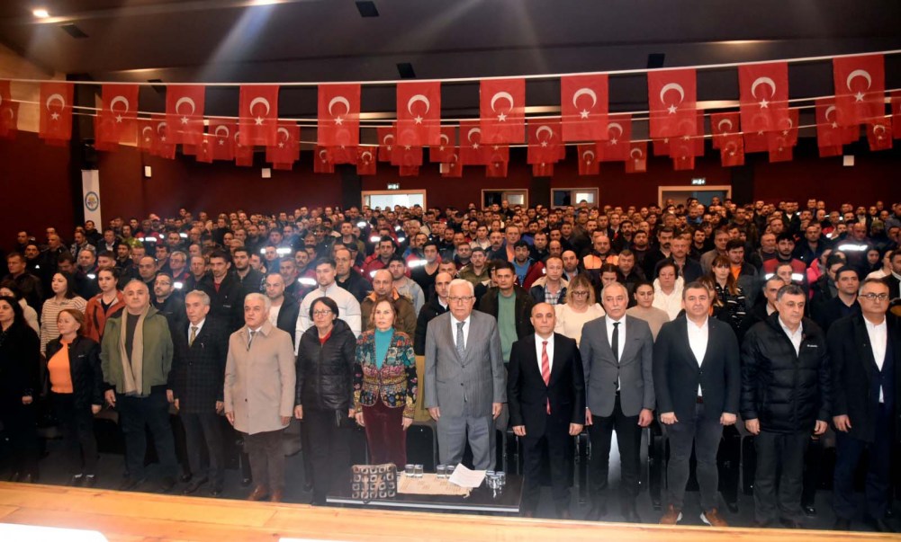 Atatürk Kültür Merkezi Dündar Güçeri Salonu’nda yapılan ek sözleşme törenine Belediye-İş Sendikası Genel Başkan Yardımcısı Kemal Çavuşoğlu, Zonguldak Şube Başkanı Osman Karataş, Şube Başkan Yardımcısı Hasan Aydın, sendika yetkilisi Recep Köksal, belediye başkan yardımcıları, meclis üyeleri, daire müdürleri ve çok sayıda işçi katıldı. Belediye Başkanı Halil Posbıyık, eşi Neriman posbıyık ve oğlu Tuğberk Posbıyık’la birlikte işçilerin alkışları eşliğinde salona girdi.