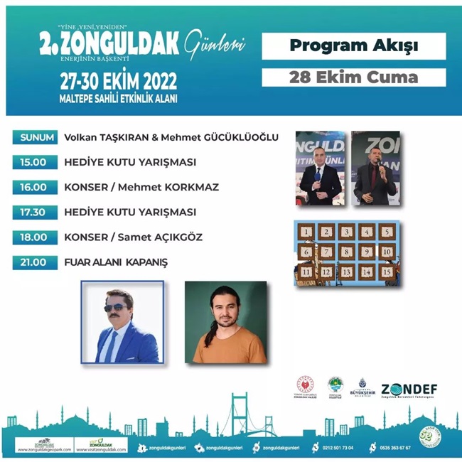 27 Ekim-30 Ekim Pazar Akşam saatlerine kadar ziyaret e açık olacak olan Zonguldak Tanıtım Günleri kapsamında etkinlikler Devrek Beyaz Baklava Yeme yarışması ile başladı. Stantlar yoğun katılım ile ziyaretçilere açıldı. Etkinliklerde Hediye Kutu Yarışması Zonguldak Çelikel Lisesi Gençlik Konseri,Halk Oyunları gösterileri ile Yerel Sanatçılar sahne alacak. Zonguldaklı bir çok kitap yazarı da okuyucuları ile buluşup kitaplarını imzalayıp okuyucuları ile sohbet etme imkanı buldu.