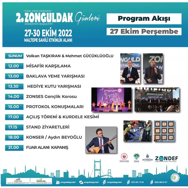 Zonguldak Dernekleri Federasyonu(ZONDEF) organizasyonuyla Zonguldak’ın simgelerinin ve Yöresel ürünlerin tanıtılacağı “Yine Yeni Yeniden Zonguldak” günlerinin ikincisi İstanbul’un Maltepe ilçesinde Sahil'de özel olarak Hazırlanan Etkinlik alanında bugün başladı.