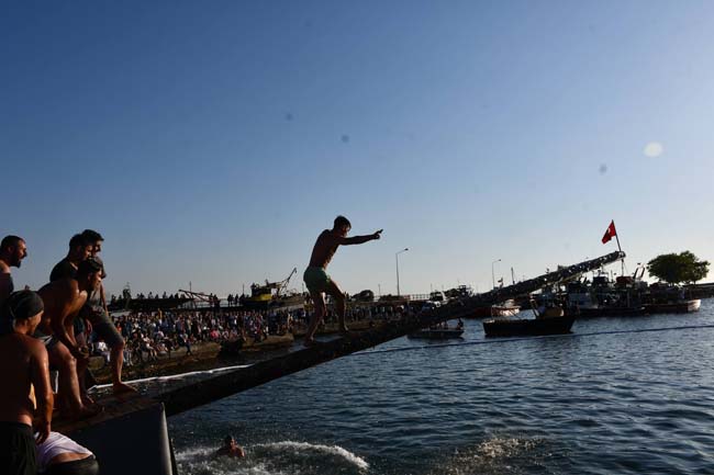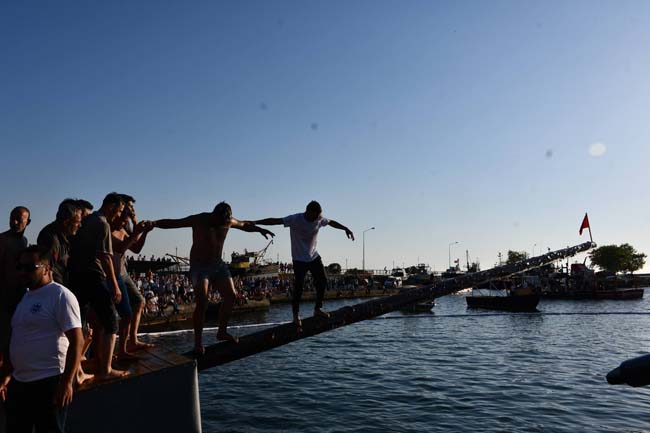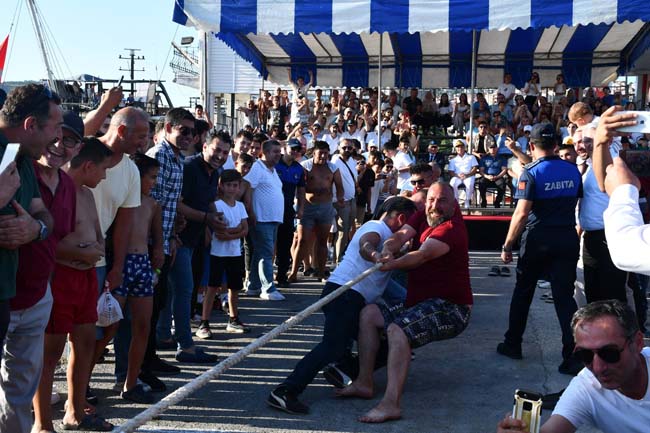 Etkinlikler kapsamında düzenlenen yağlı direk yarışması ise Bozhane Limanı’nda renkli görüntülere sahne oldu. Her yıl geleneksel olarak düzenlenen yağlı direk yarışması geçtiğimiz sene iptal edilen Yağlı Direk yarışlarının bu yıl tekrardan yapılması büyük ilgi gördü. Yarışmacılar, Bozhane Limanı’nda kurulan ve yağlanmış olan direğe tırmanarak ucundaki bayrağı almaya çalıştı. Zorlu mücadeleler sonucunda bayrağı ilk kapan yarışmacı, izleyicilerin alkışları arasında ödülünü aldı.