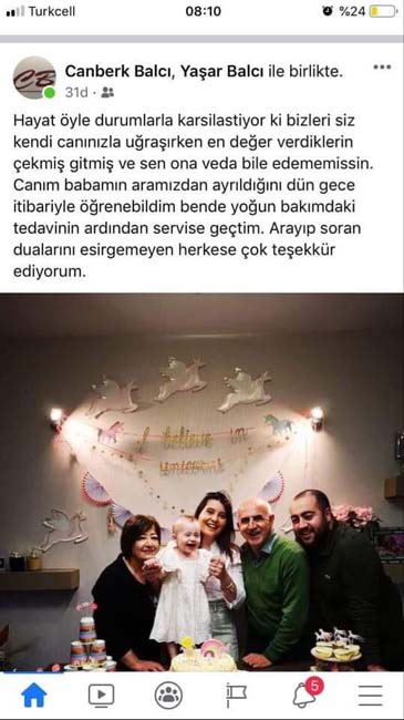 Canberk Balcı sağlık durumu iyi ilgili bilgiyi ve babasını kaybetmenin üzüntüsünü sosyal medya sayfasındaki yazı ile paylaştı.