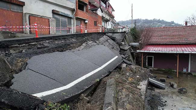 Zonguldak’ın Kozlu ilçesi Taşbaca Mahallesi’nde yoğun yağış ve kar nedeniyle yol çökmesi meydana geldi.