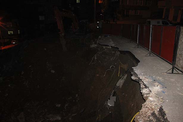 ilçesinde inşaat alanının yanından geçen yolun çökmesi sebebiyle doğalgaz