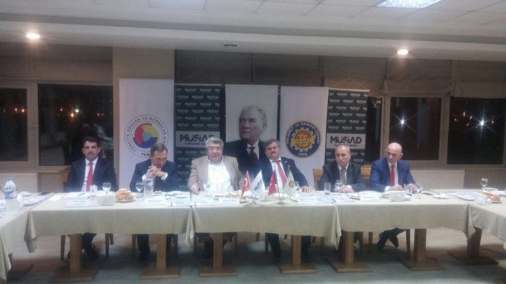 Kdz Ereğli TSO'dan yapılan açıklamaya göre, TSO Başkanı Yaşar Tetiker, MÜSİAD Yönetim Kurulu üyeleri ve yöneticileri, Milletvekili Faruk Çaturoğlu ve Kdz Ereğli Belediye Başkanı Hüseyin Uysal ile birlikte 11/11/2015 Çarşamba günü istişare toplantısı gerçekleştirdi.