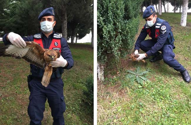 Konuyla ilgili olarak Valilik Basın bülteninde “Zonguldak Çaycuma ilçesi Perşembe-Kozcağız Karayolu bölgesinde 27.01.2021 günü saat 16.00 sıralarında icra edilen Önleyici Kolluk Devriyesi esnasında yol kenarında uçamaz halde yaralı şahin bulunmuş, Jandarma devriyesince muayene ve tedavi maksadıyla veterinere götürülmüştür. Veteriner tarafından yapılan muayenede şahinin üzerinde saçma izlerine rastlanılmıştır. Yaralı şahin, Zonguldak İl Jandarma Komutanlığı ekipleri tarafından tedavisinin yaptırılmasına müteakip tekrar doğaya salınmak üzere Zonguldak Doğa Koruma ve Milli Parklar Müdürlüğü ekiplerine teslim edilmiştir” denildi.