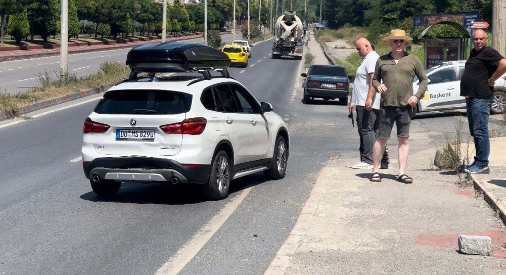 Zonguldak'ın Kozlu ilçesinde iki sürücünün yolun ortasında durup kavga etmesi kazaya neden oldu.
