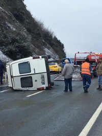 Zonguldak'ın Alaplı İlçesinde, devrilen yolcu minibüsünde 6 kişi yaralandı.