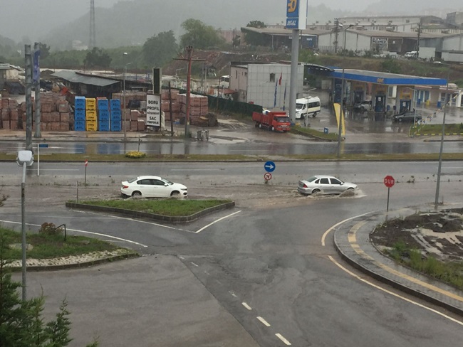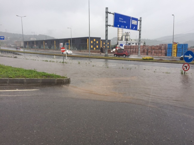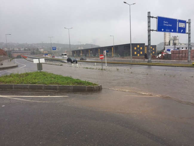 Zonguldak’ın Ereğli ilçesinde başlayan sağanak yağmurda yollar göle döndü.