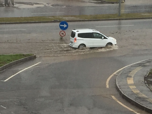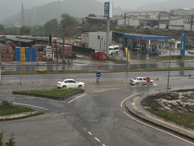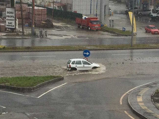 Ereğli’ de öğle saatlerinde başlayan ve aralıksız olarak devam eden sağanak yağmur sonrasında yollar göle döndü. Özellikle yeni Terminal girişinde ki su birikintisi araç sürücülerine zor anlar yaşattı. Tıkanan su kanalını açmak isteyen bir vatandaşın yaşadığı zor anlar da kameralara yansıdı.