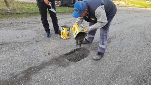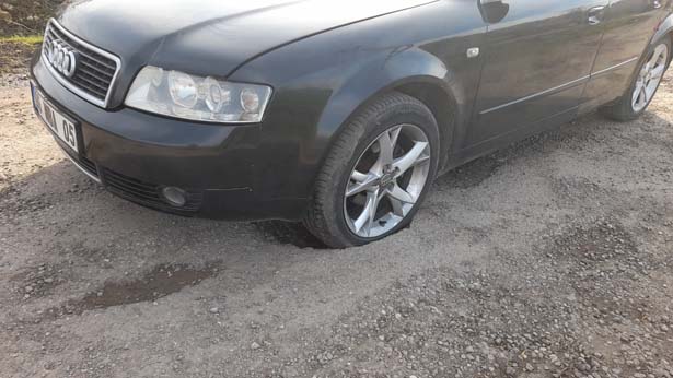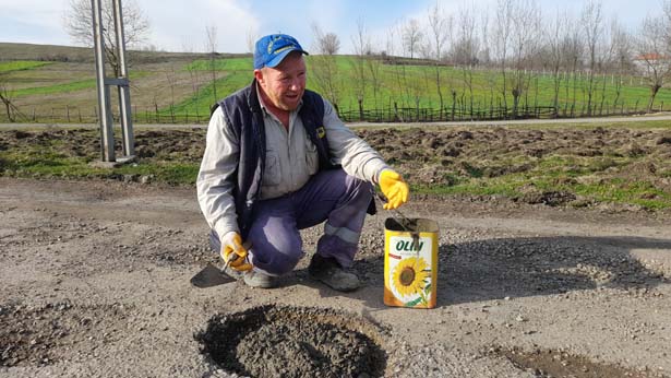 53 yaşındaki Osman Çıvak, harç kararak arabanın bagajında getirdiği çimentolar ile yama yaptı. Çıvak, araçların ön amortisörlerinin sıklıkla bozulduğunu söyleyerek şöyle dedi: