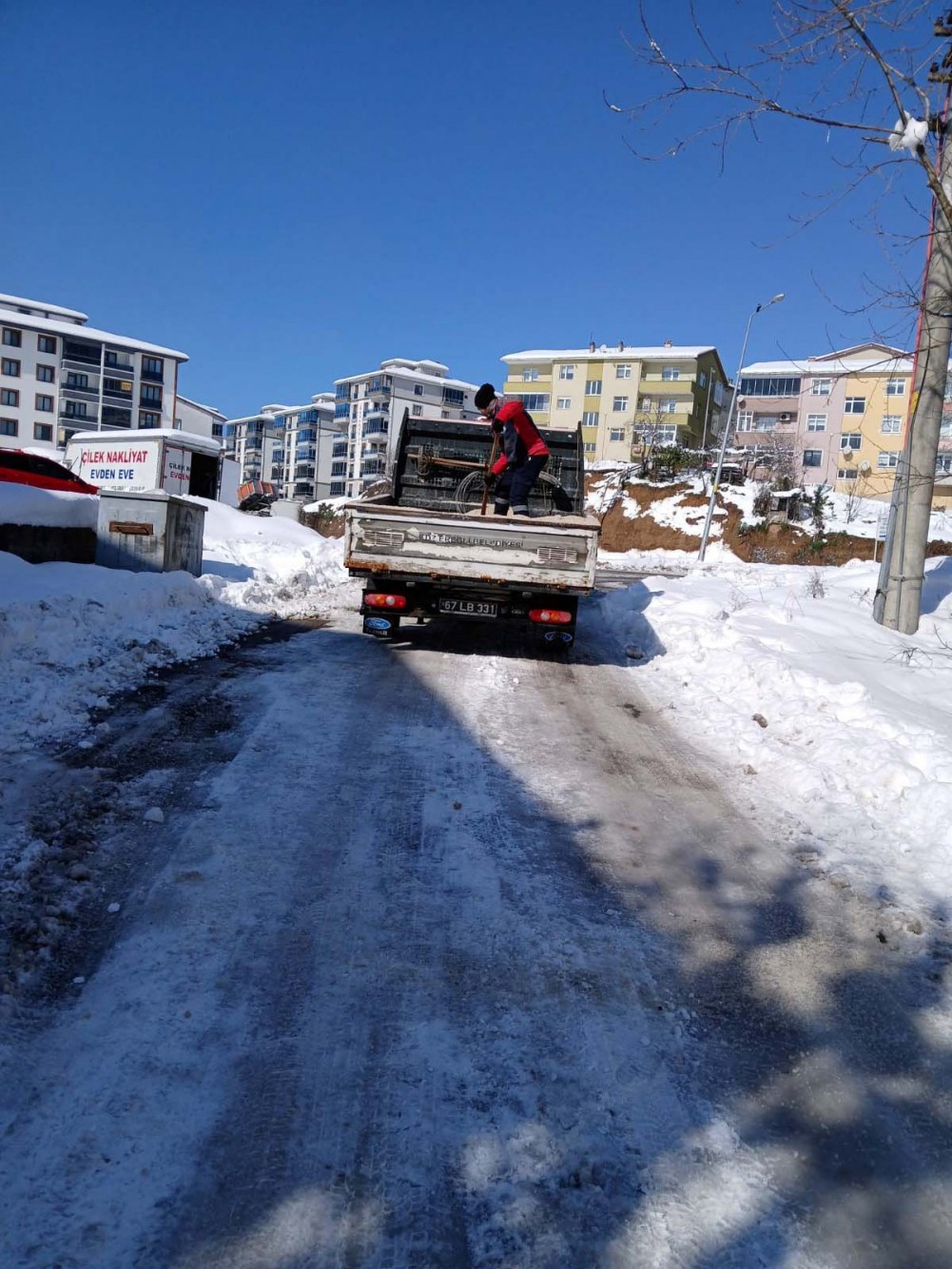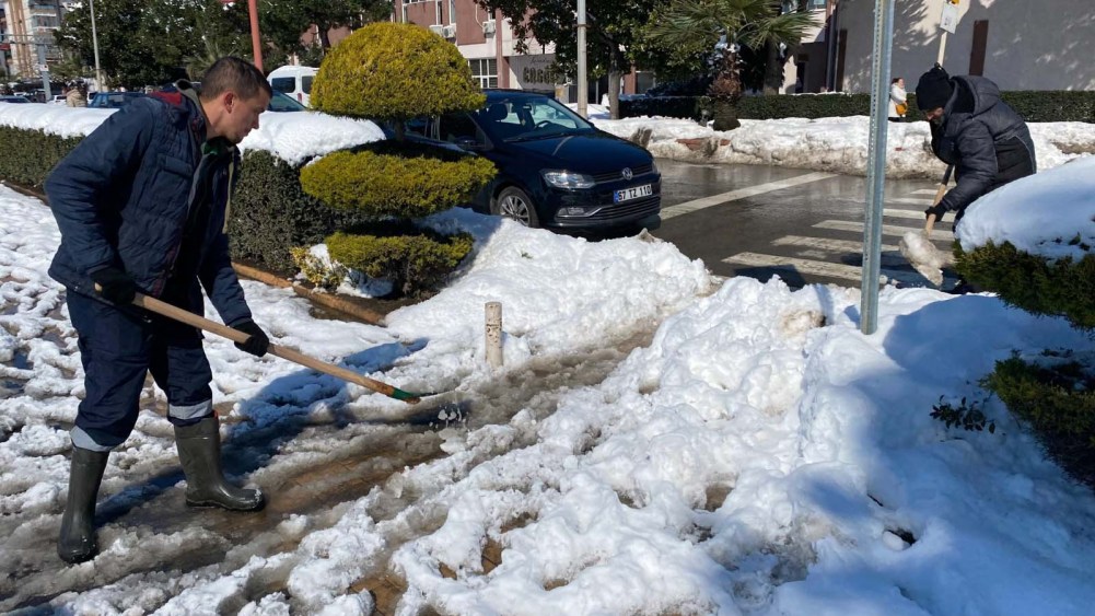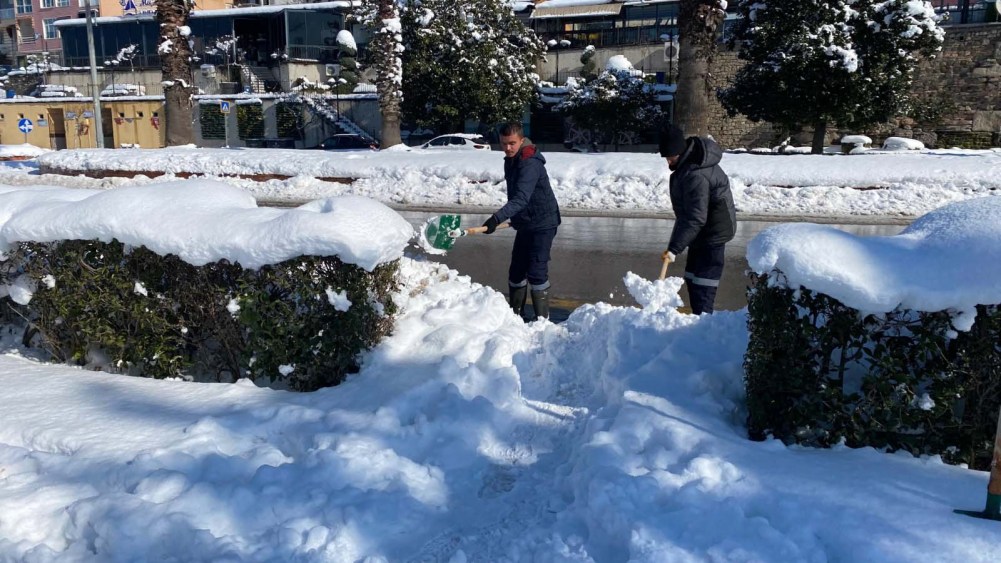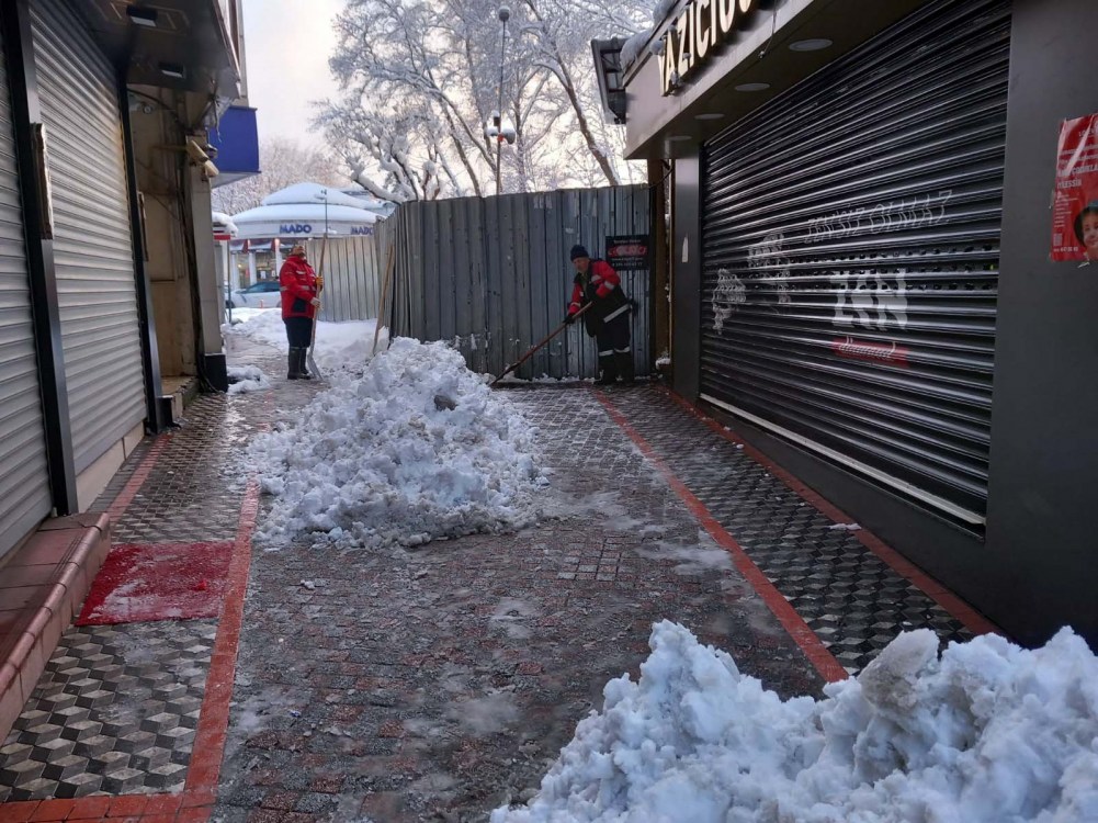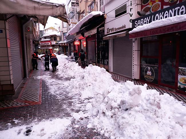 Fen İşleri Müdürlüğü’nün organizasyonunda Su ve Kanalizasyon, İtfaiye, Temizlik İşleri ve Zabıta başta olmak üzere bütün birimler, karla mücadele seferberliğini sürdürüyor. Ana arterlerden sonra ara yollarda kar küreme ve tuzlama çalışmaları devam ediyor, kaldırımlar ve yaya geçitleri yayalar için güvenli hale getiriliyor. İtfaiye tehlike arz eden kar ve buz sarkıtlarını temizliyor, çarşı merkezi kar kütlesinden arındırılıyor.