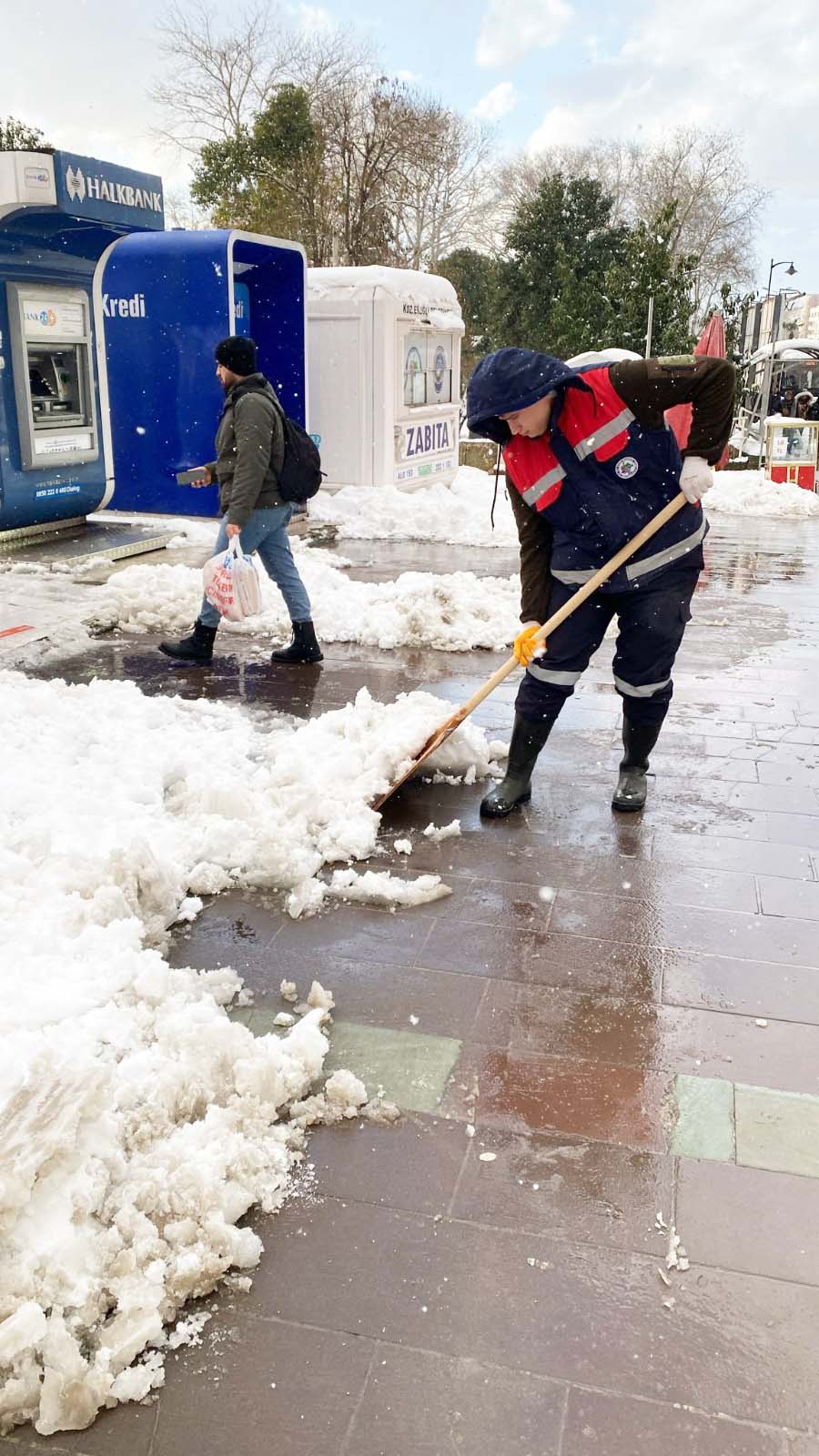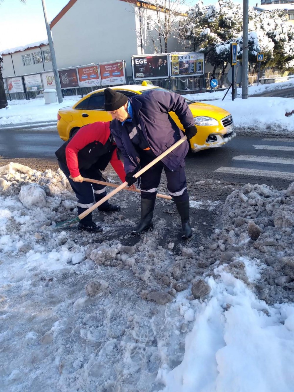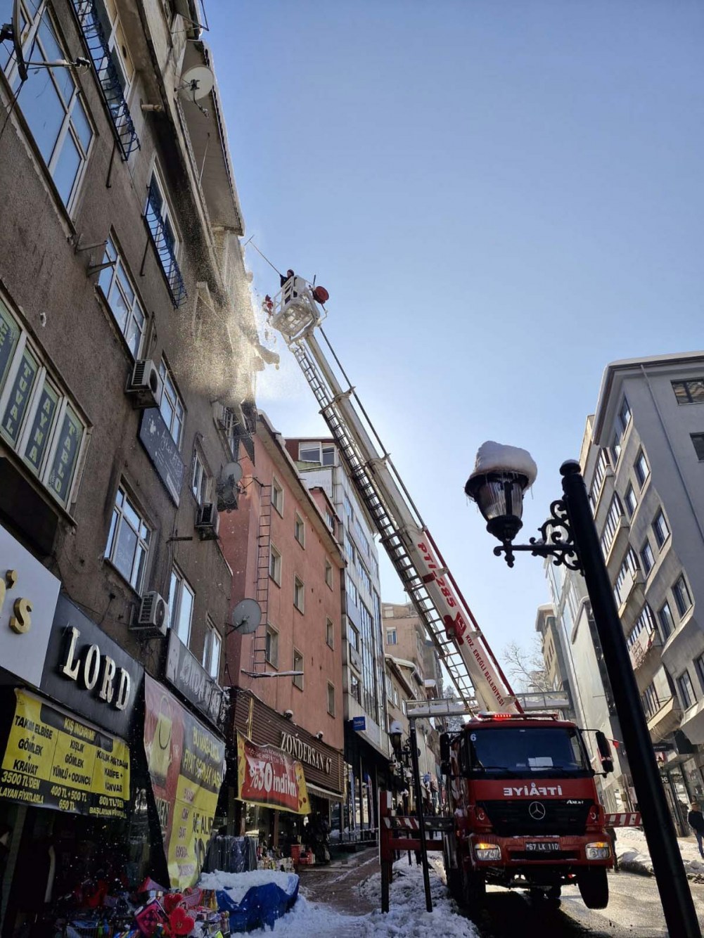 Fen İşleri Müdürlüğü’nün organizasyonunda Su ve Kanalizasyon, İtfaiye, Temizlik İşleri ve Zabıta başta olmak üzere bütün birimler, karla mücadele seferberliğini sürdürüyor. Ana arterlerden sonra ara yollarda kar küreme ve tuzlama çalışmaları devam ediyor, kaldırımlar ve yaya geçitleri yayalar için güvenli hale getiriliyor. İtfaiye tehlike arz eden kar ve buz sarkıtlarını temizliyor, çarşı merkezi kar kütlesinden arındırılıyor.