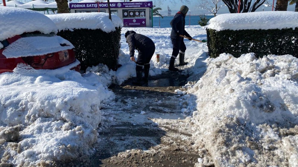 Kdz. Ereğli Belediyesi, karla mücadele seferberliğini sürdürüyor. Ana arterlerden sonra ara yollarda kar küreme ve tuzlama çalışmaları devam ediyor, kaldırımlar ve yaya geçitleri yayalar için güvenli hale getiriliyor. İtfaiye tehlike arz eden kar ve buz sarkıtlarını temizliyor, çarşı merkezi kar kütlesinden arındırılıyor.