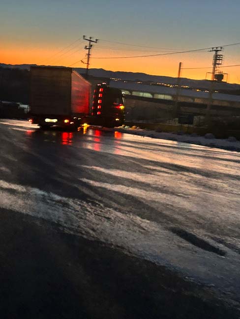 Zonguldak’ın Karadeniz Ereğli ilçesinde yoldaki buzlanmadan dolayı kaza yapan TIR yolu trafiğe kapattı.