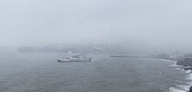 Zonguldak’ta sabah saatlerinde etkili olan şiddetli kar yağışı ve fırtına nedeniyle denizde dev dalgalar meydana geldi.