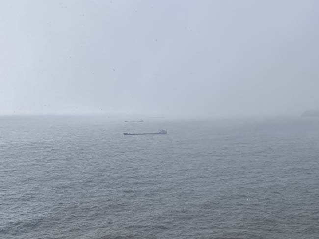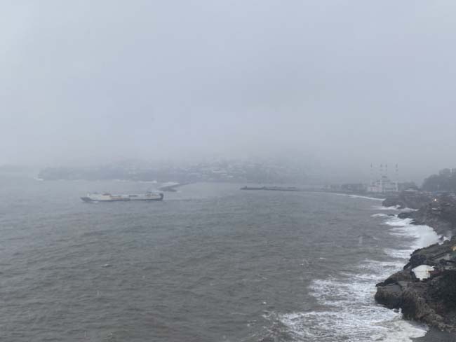 Dev dalgalar nedeniyle açıkla duran yük gemileri limana yaklaşmakta zorluk çekti.